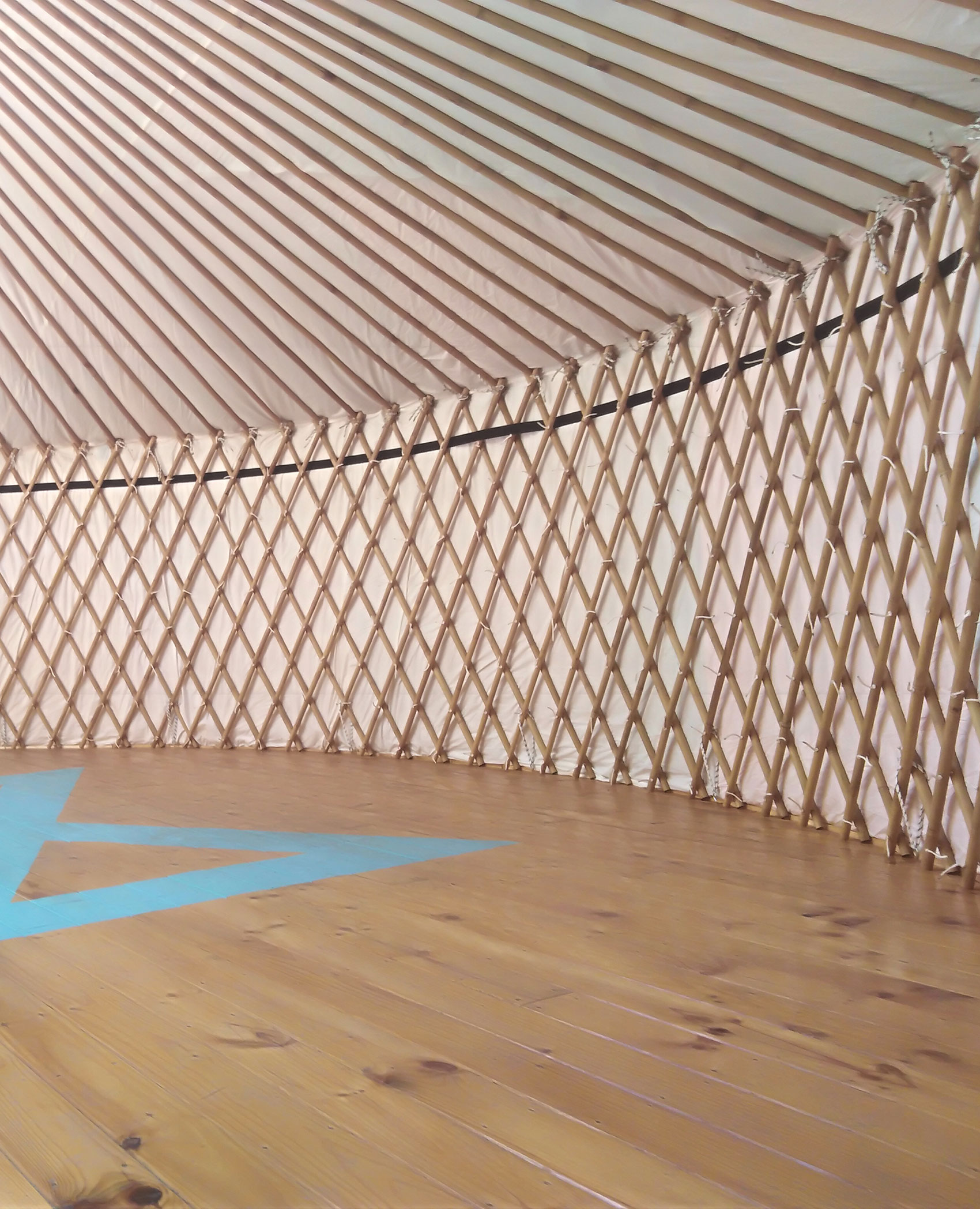 Canvas. It's a 100 % cotton canvas which is waterproof and specially made for tents.